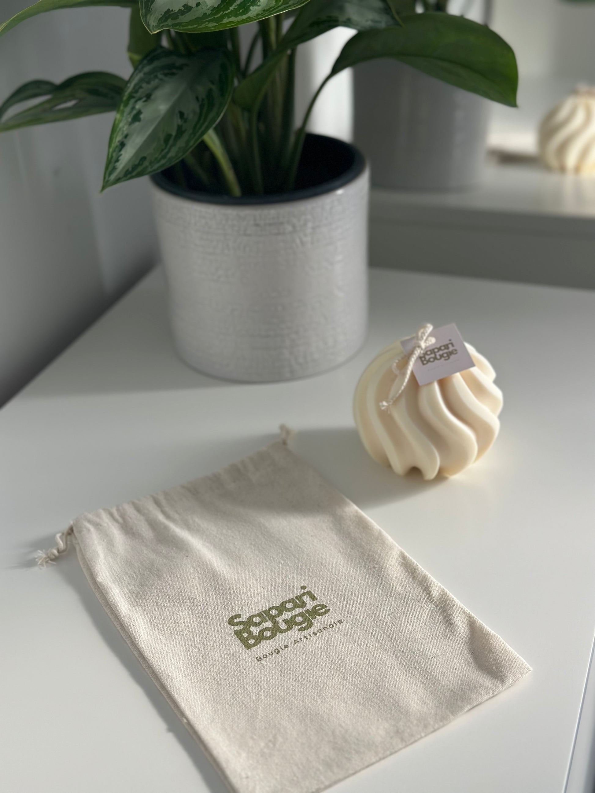 - Pochon en lin : Un pochon de rangement pour protéger la bougie de la poussière.