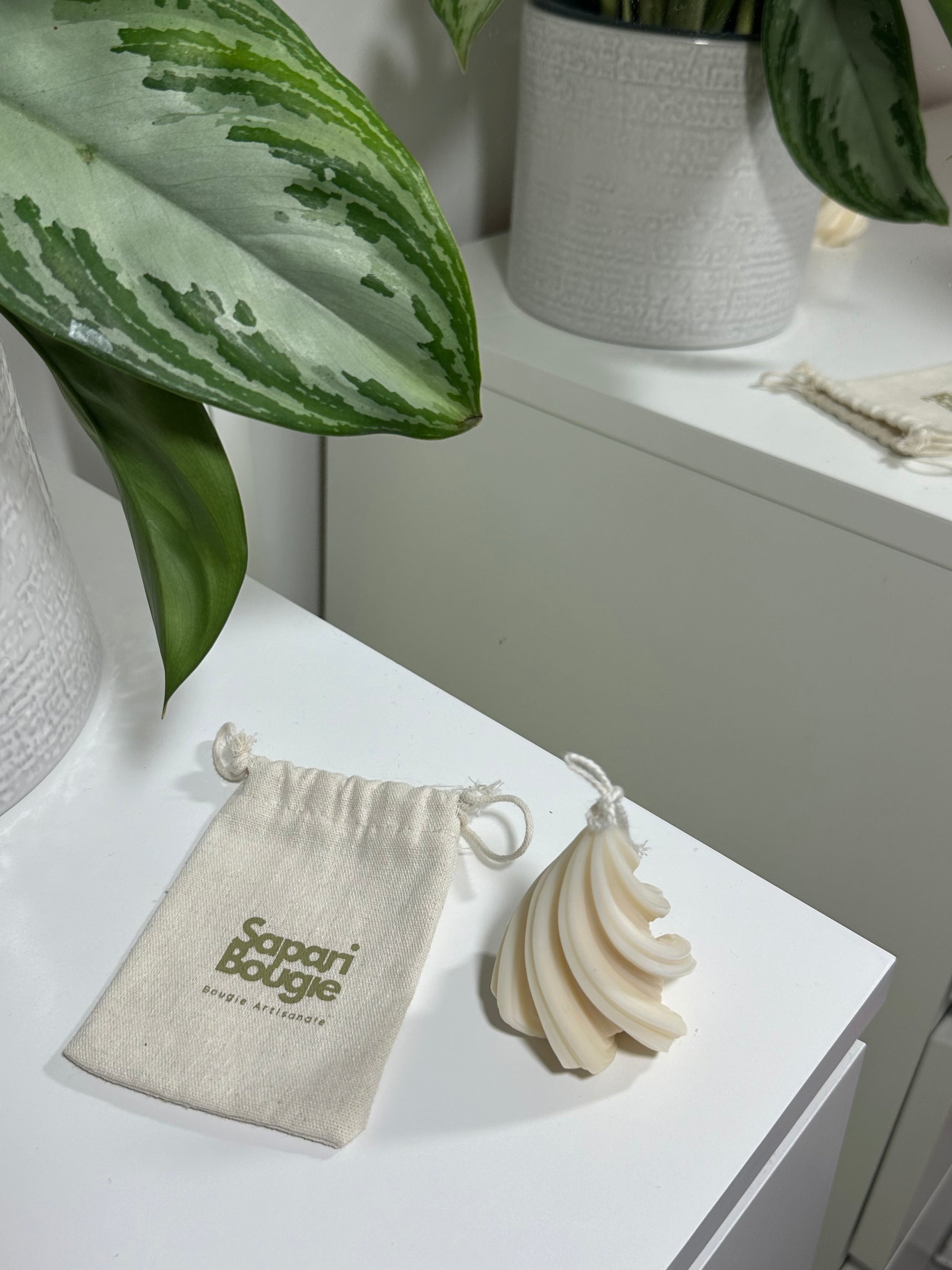 - Pochon en lin : Un pochon de rangement pour protéger la bougie de la poussière.